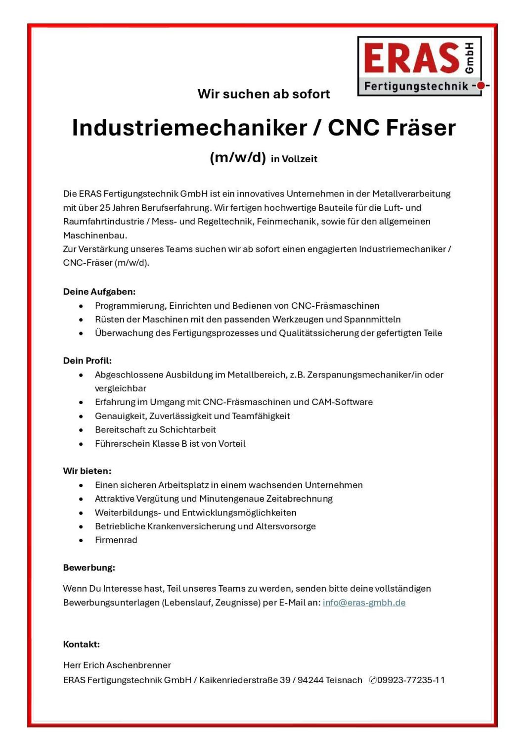 Offene Stellen bei ERAS